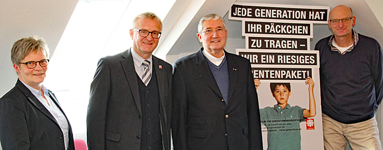 Christel Presber (LandesEhrenamtsagentur Hessen), Staatssekretär Dr. Wolfgang Dippel (CDU), Msgr. Elmar Gurk (Aufsichtsratsvorsitzender der Caritas im Bistum Fulda) sowie Moderator Hermann Diel. (v.l.)
