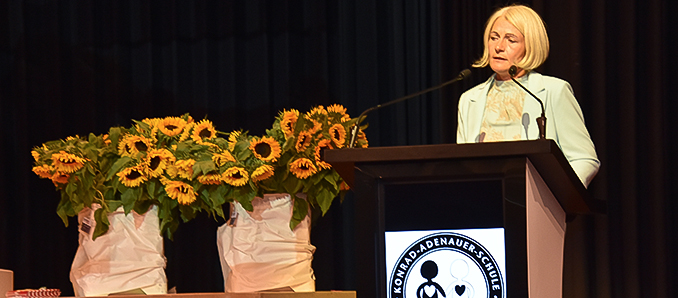 Anschließend las sie Auszüge aus Briefen vor, die die Schüler vor sechs Jahren als neue Fünftklässler an sich selbst geschrieben und darin ihre Erwartungen an die bevorstehende Schulzeit notiert hatten. Das sorgte neben einer Prise Heiterkeit mitunter auch für Nachdenklichkeit. Die Vorsitzende des Schulelternbeirats Christiana Jeroch gratulierte zum erfolgreichen Abschluss mit den Worten: „Selbst als Erwachsener ist es nicht immer leicht, den richtigen Weg zu finden. Ihr habt vor sechs Jahren den richtigen Weg zur KAS gefunden. Jetzt steht ihr vor der nächsten Weggabelung,“ sagte sie zum Abschluss ihrer Würdigung.