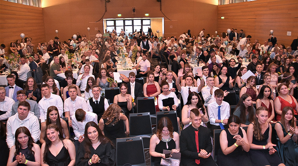 „Geschafft“ – dieser Ausruf der Erleichterung schwebte über den Feierlichkeiten im Petersberger Propsteihaus anlässlich der Entlassung von 123 Realschulabsolventen und -absolventinnen der Konrad-Adenauer-Schule (KAS). 119 von ihnen erhielten aus den Händen von Schulleiterin Anke Schüler das lang ersehnte Zeugnis der Mittleren Reife und wurden erstmals im Rahmen des Abschlussballs feierlich verabschiedet. Dass zudem 79 Schülerinnen und Schüler der Petersberger Realschule auch den qualifizierenden Realschulabschluss schafften, erfüllte die Schulleiterin mit einer gehörigen Portion Stolz.
