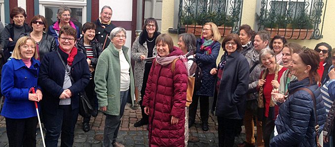 Auf den Festvortrag folgte ein Stadtrundgang mit dem Thema „Fuldaer Frauen“. An 25 Orten in Fulda wurden herausragende Persönlichkeiten in der Fuldaer Geschichte gewürdigt wie z.B. Ria Warmuth, die erste Frau im Magistrat der Stadt Fulda. Die Teilnehmenden folgten interessiert den Ausführungen von Stadtführerin Petra Sorg zur Fuldaer Frauengeschichte.