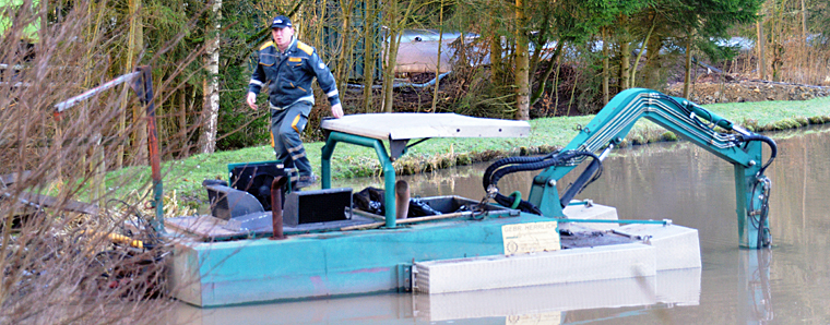 Seit Dezember entnimmt ein Fachunternehmen mit einem Amphibienfahrzeug mit einem überdimensionalen Saugrüssel den Schlamm aus den Teichen. Dieser wird in großen Textilsäcken gelagert und getrocknet, um das Material dann zur Rekultivierung der Erdaushubdeponie bei Michelsrombach zu nutzen. Durch die Trocknung kann das Volumen und damit der Transportaufwand wesentlich verringert werden. Zuvor hatten bereits Mitglieder des Sportfischervereins Praforst die Teiche abgefischt und den Besatz in den Ententeich am Hünfelder Bürgerpark schonend umquartiert.