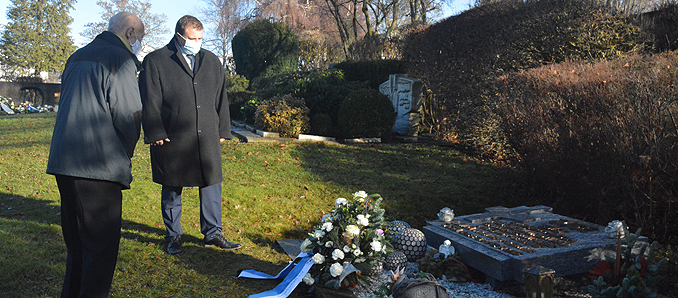 Zum 25. Todestag des Computerpioniers Konrad Zuse legten Bürgermeister Benjamin Tschesnok und Dr. Wilhelm Mons für den Vorstand der Konrad-Zuse-Gesellschaft ein Blumenbukett an dessen Grab am neuen Hünfelder Friedhof nieder. Zuvor hatte bereits die Deutsche Industrieforschungsgemeinschaft Konrad Zuse mit einem Blumengruß am Grab gewürdigt.