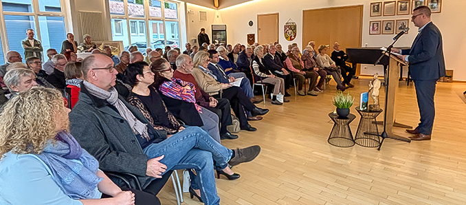 „Die Erinnerungen sind ein Teil unserer Geschichte, auch hier in Flieden“, betonte Fliedens Bürgermeister Christopher Gärtner (CDU) in seinen Begrüßungsworten. „Die Zeitzeugen, die diese Flucht damals mitgemacht haben, sind inzwischen hochbetagt“, führte er weiter aus. Umso wichtiger sei es, ihnen zuzuhören, sie erzählen zu lassen, damit die Erinnerungen lebendig und sichtbar bleiben. Dem Fliedener Gemeindeoberhaupt war es ein Anliegen, den Vertriebenen seiner Heimatgemeinde mit der Gedenkveranstaltung am 2. November die Gelegenheit dafür einzuräumen.