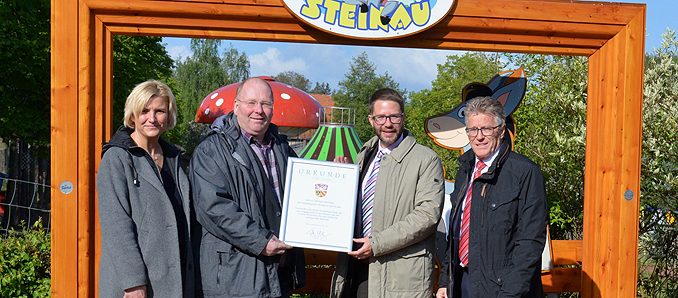 Am Sonntag, 25. August, wird der Erlebnispark Steinau sein 25-jähriges Bestehen mit den großen und kleinen Gästen feiern. Landrat Thorsten Stolz und Kreisbeigeordneter Winfried Ottmann überbrachten bereits im Vorfeld die offiziellen Glückwünsche des Kreisausschusses an Betreiber Theo Zwermann und seine Partnerin Annette Dietz.