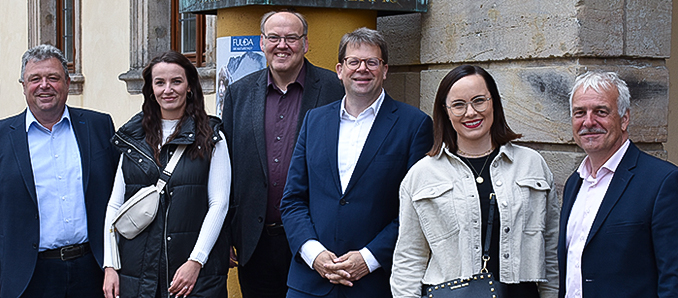 Ulrich Schmitt (Geschäftsführer LGS gGmbH), Maren Siemon (Marketing LGS gGmbH), Dr. Frank Verse (Leiter Städtische Museen), Oberbürgermeister Dr. Heiko Wingenfeld, Jennifer Herrlich (Tourismus & Sales LGS gGmbH) und Marcus Schlag (Geschäftsführer LGS gGmbH).