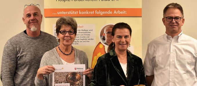 Der Hospiz-Förderverein „LebensWert“ Fulda e.V. hat mit dem zu Ende gehenden ersten Halbjahr seines Angebotes „Meditation für Trauernde und andere Interessierte“ Bilanz gezogen. Dazu trafen sich Mitglieder des Fördervereins und der Leiter des Malteser Hospizzentrums Wilfried Wanjek mit der eigentlichen Akteurin, Frau Heidemarie Hillje, zu einem gemeinsamen Austausch. Frau Hilljes Wunsch und Idee war es im Sommer 2018 gewesen, sich mit ihren Talenten und Kenntnissen als Persönlichkeitstrainern, Autorin und Trauerbegleiterin für Trauernde Menschen und letztendlich für den Hospiz-Förderverein ehrenamtlich zu engagieren.