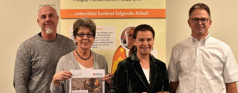 Die Vorstandsmitglieder des Hospiz-Fördervereins Martin Hoogen und Silvia Hillenbrand, Meditationsleiterin Heidemarie Hillje und der Leiter des Malteser Hospizzentrums Wilfried Wanjek (v.l.)