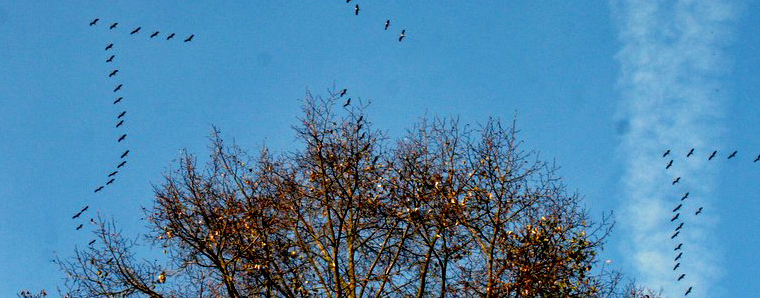 Für den Naturbeobachter sind ziehende Kraniche an ihrer keilförmigen Formation und den trompetenartigen Rufen zu erkennen. Bei günstigen Flugbedingungen ziehen die bis 1,30 Meter großen Tiere, die ihre Flügel bis 2,40 Meter weit aufspannen können, ohne Zwischenhalt von Nordfrankreich bis nach Ostdeutschland. +++