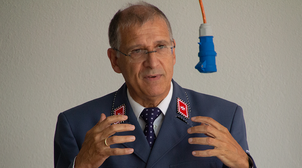 Diözesanjugendpfarrer Alexander Best segnete das Malteser Zentrum für Notfallvorsorge. „Das ist für mich ein ganz besonderer Einsatz, denn im Katastrophenschutz sowie im Sanitäts- und Rettungsdienst gehen die Malteser ihrer ureigenen Aufgabe nach. Die ritterliche Aufgabe für andere Menschen da zu sein“, erklärt Best.