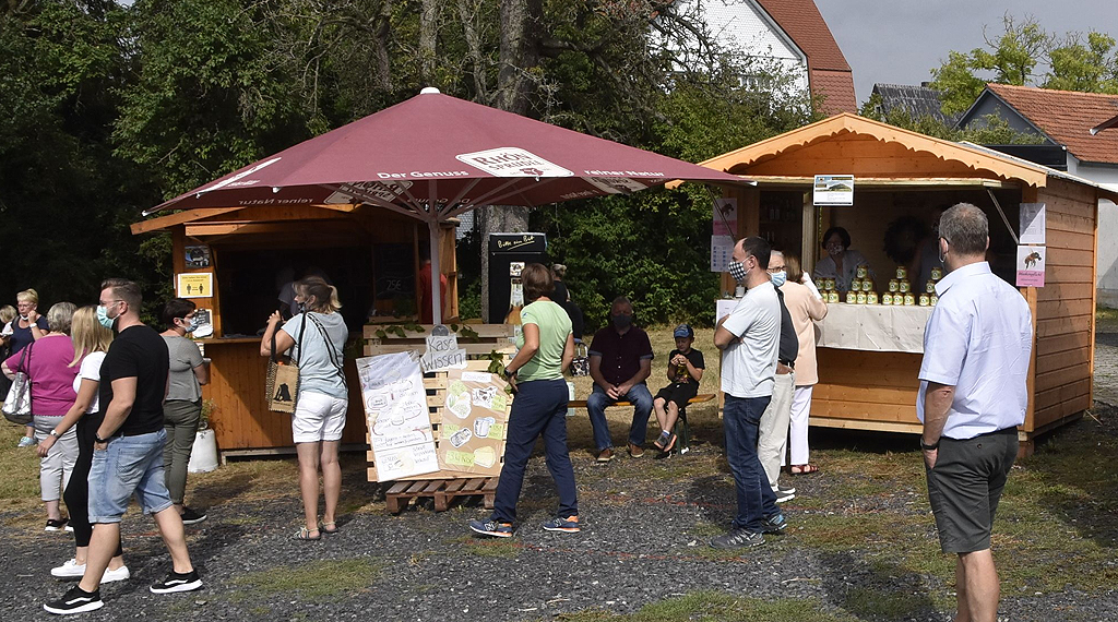 Der Wettergott meinte es gut mit dem 1. Feierabend-Regionalmarkt in Rasdorf. Die Besucher kamen in Strömen, so dass die Ordner alle Hände voll zu tun hatten, Abstand- Hygieneregeln und Maskenpflicht mussten eingehalten werden und wurden kontrolliert. Die regionalen Produkte waren sehr gefragt und zeigten die Vielfalt an Angeboten aus dem Hessischen Kegelspiel und der hessisch-thüringischen Rhön.