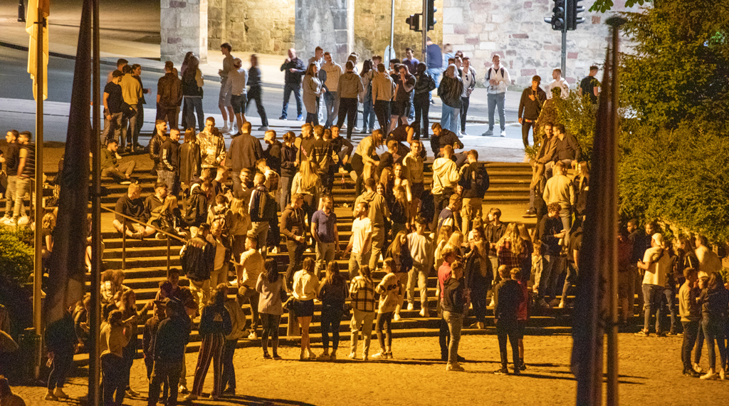 Was eigentlich ein anschaulicher Platz ist, lockt nach den Lockerungen zahlreiche Besucher an - und das überwiegend bei schönem Wetter der vergangenen Wochen. Der Treffpunkt ist sehr beliebt auf den weitläufigen Rasenflächen, den Treppenbereichen und Bänken, nur bei einem friedlichen Zusammentreffen auf dem Domplatz bleibt es nicht. Das zeigte sich auch am Freitagabend. Auf dem Domplatz kamen etwa 400 Jugendliche und Heranwachsende zusammen. Hierbei kam es zu mehren Gruppenpartys mit lauter Musik, Alkohol und möglicherweise auch Drogenkonsum.
