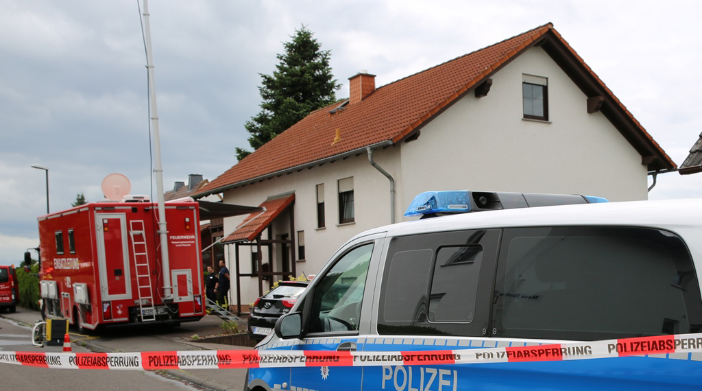 Lauterbach. Lichterloh in Flammen stand am Freitagmittag ein Wohnhaus am Hellfeld im Alsfelder Stadtteil Eudorf. Bei Eintreffen der Feuerwehr schlugen meterhohe Flammen aus dem Gebäude und einem davorstehenden Auto. Über 100 Feuerwehrleute aus ganz Alsfeld eilten zur Hilfe, mehrere Feuerwehrtrupps versuchten unter Atemschutz in das Haus vorzudringen. Bei den Löscharbeiten fanden die Feuerwehrleute einen Leichnam im Haus. „Zur Identität kann keine Angabe gemacht werden“, so ein Sprecher der Polizei vor Ort. Mehrere Rettungsteams und Notärzte hatten sich vergeblich in Bereitstellung positioniert.