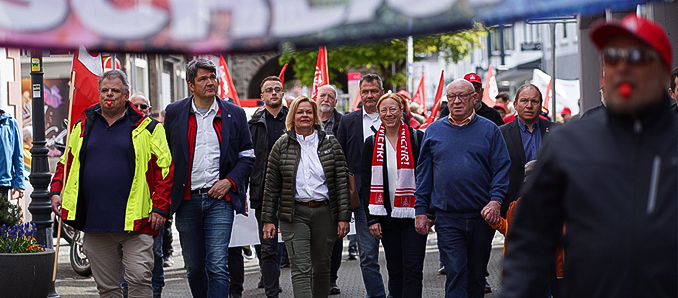 Der 1. Mai sei ein Tag der Solidarität, so Faeser. „Sozialdemokratie und Gewerkschaften stehen zusammen - für die hart arbeitenden Menschen, die dafür sorgen, dass unser Wohlstand gesichert wird. Für die Menschen in den Krankenhäuser, in den Betrieben, bei der Polizei. Sie alle haben es mehr als verdient, einen fairen Lohn zu bekommen.“ Deshalb stelle die aktuelle Bundesregierung „soziale Aspekte“ in den Vordergrund. „Wir haben den Mindestlohn auf 12 Euro angehoben. Wir haben Hartz IV abgeschafft. Wir haben das Bürgergeld eingeführt.“ Den Gewerkschafterinnen und Gewerkschaftern dankte Faeser. „Ihr kämpft unermüdlich dafür, dass es gute Arbeitsbedingungen und faire Löhne gibt. Das verdient unseren Respekt.“ +++ pm