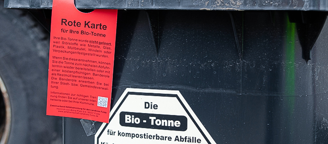 Der Zweckverband Abfallsammlung für den Landkreis Fulda setzt zur Verbesserung der Qualität des Bioabfalls in den Bio-Tonnen auf ein Detektionssystem. Seit der Informationsphase Ende März wurden falsch befüllte Bio-Tonnen mit einer „Gelben Karte“ gekennzeichnet. Mit dieser Karte wurden Besitzerinnen und Besitzer darüber informiert, dass Abfälle enthalten waren, die nicht in die Bio-Tonne gehören. Ab 8. Mai werden solche Bio-Tonnen, in denen Fremdstoffe festgestellt wurden, mit der „Roten Karte“ gekennzeichnet und nicht mehr geleert.