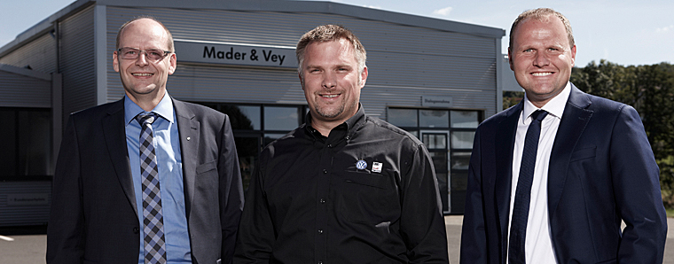 Andreas Wätjen, Geschäftsführender Prokurist Autohaus Schlüchtern, Stefan Vey, Filialleiter, Philipp Atzert, Geschäftsführer atzert:weber Holding