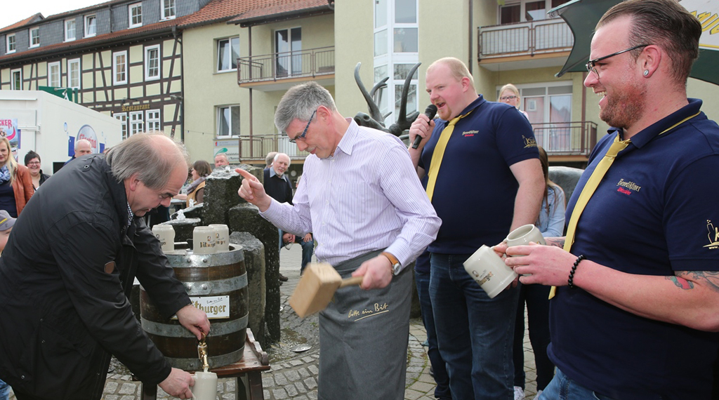 Klein bis Groß verfolgte den Fassanstich am Marktplatz
