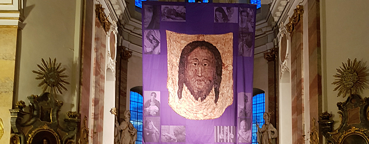 Deshalb sind auf dem Fastentuch die Bilder leidender Menschen zu sehen, stellvertretend für alle Leidenden dieser Welt. In ihnen schauen wir Menschen Gott ins Angesicht. mit.LEIDEN.schaft ist diese Fastenzeit überschrieben. +++ pm