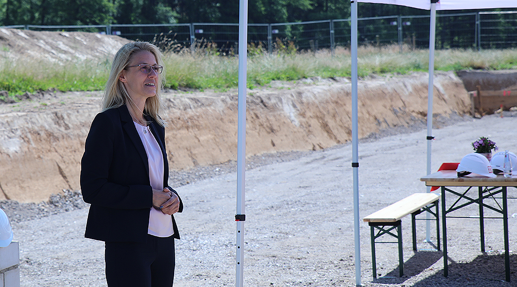 Abschließend ergriff Sandra Leps, Geschäftsführerin der Menetatis Unternehmensgruppe und der Betreiber der Immobilie, das Wort. „Wir betreiben aktuell 13 stationäre Einrichtungen, sechs betreute Wohneinheiten und neun Tagespflegen sowie einen ambulanten Dienst. Bis zum Jahr 2024 werden wir auf eine Größe von ungefähr 22 Einrichtungen wachsen. Ich freue mich, dass wir heute hier bei strahlendem Sonnenschein zusammengekommen sind und gemeinsam mit der Carestone das nächste Projekt einleiten können“, so die Geschäftsführerin in ihren einleitenden Worten, die weiter ausführte: „So eine Grundsteinlegung ist auch für uns als Betreiber sehr, sehr wichtig, weil es einfach ein Zeichen setzt, um zu zeigen: Wir sind hier und wir möchten für die Bürgerinnen und Bürger in der Gemeinde Kalbach und Umgebung ein neues Zuhause schaffen.“