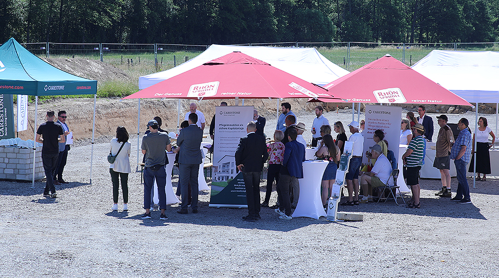 Die Carestone Projekt I GmbH, Bauherr der Immobilie, zeigte sich heute bei der feierlichen Grundsteinlegung positiv überrascht von der Willkommenskultur, die die Kalbacher Bürgerinnen und Bürger bei dem ersten aneinander Kennenlernen der Unternehmensgruppe mit Sitz in Hannover zuteil werden ließen.