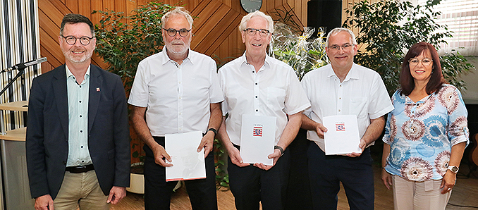 Im Rahmen einer Feierstunde verabschiedet sich das Kollegium und das Schulleitungsteam von Studiendirektor Hubert Schmidt, Abteilungsleiter der Fachschule für Technik, Studienrat Joachim August und Fachlehrer Karl-Heinz Ketteler - Koordinator für arbeitstechnische Fächer. Zusammen bringen es die drei zukünftigen Pensionäre, wovon Hubert Schmitt und Karl-Heinz Ketteler zum Schulleitungsteam der Ferdinand-Braun-Schule gehören, auf 100 Jahre im Schuldienst.