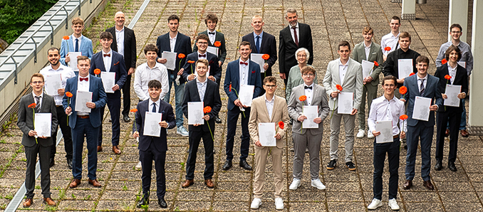 Christof Balzer, der als Vertreter der Ewald-Vollmer-Stiftung die Auszeichnung der besten Schülerinnen und Schüler aus den jeweiligen Schwerpunkten übernahm und dies mit jeweils 500 Euro honorierte, forderte die Absolventen auf, sich weiterhin die Neugier zu bewahren. Herr Balzer hat selbst hat ebenfalls sein Abitur vor 39 Jahren an der Ferdinand-Braun-Schule gemacht und betrachtet die Auszeichnung der Besten als Perspektivwechsel und Blick in die Zukunft. Getreu dem Motto von Ewald Vollmer „Leistung macht Freude“ wurden folgende Abiturienten ausgezeichnet und mit dem Geldpreis bedacht: Herr Jonas Jehn (Schwerpunkt Maschinenbautechnik), Herr Lionel Fernando Lopez Busic (Schwerpunkt Elektrotechnik) und Herr Jonas Sven Möller (Schwerpunkt Praktische Informatik).