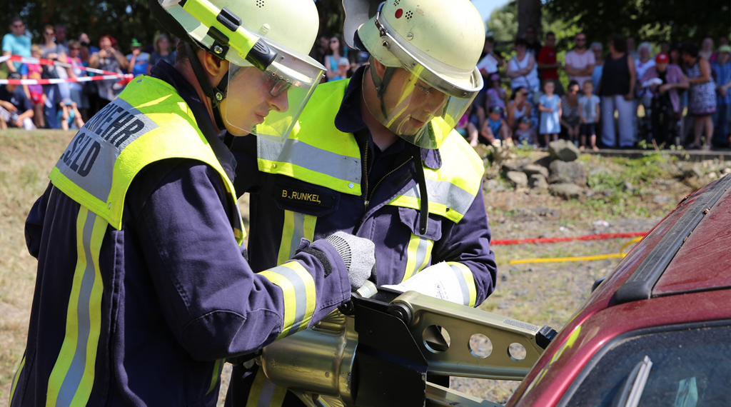 Alsfeld. Hunderte Besucher strömten am Sonntag auf den Tag des offenen Tores der Freiwilligen Feuerwehr Alsfeld-Mitte. „Es war ein voller Erfolg“, resümierte Wehrführer und Feuerwehrvorsitzender Carsten Schmidt sichtlich erfreut. Seine Kameraden präsentierten die Feuerwache samt Fahrzeugen und Einsatzgeräten sowie ihr Können. So wurde bei mehreren Übungen das Aufgabenspektrum der Brandschützer vorgeführt, dazu zählte auch die Rettung eines verunfallten Autofahrers. Der musste aus einem völlig deformierten Schrottwagen mit hydraulischen Geräten befreit werden.