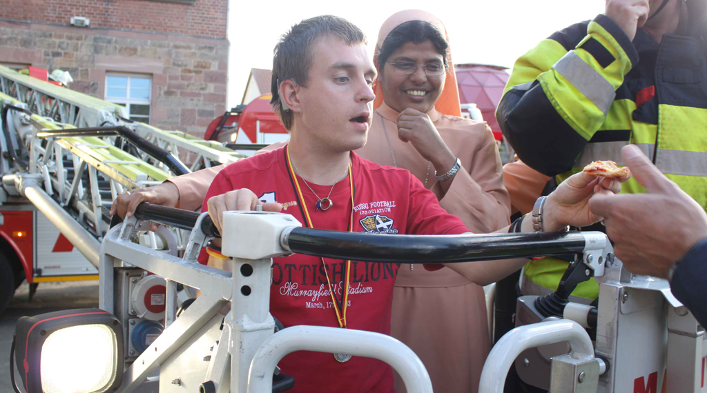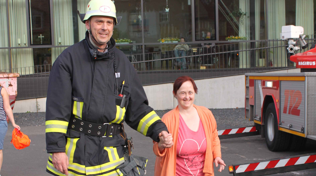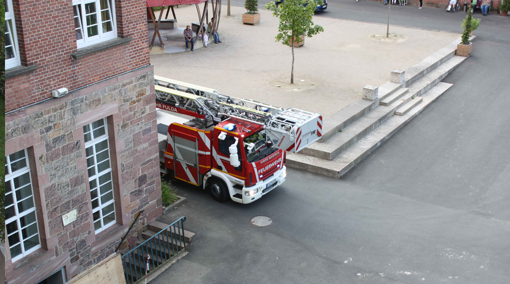 Fulda. Die Bewohnerinnen und Bewohner der Wohngemeinschaft Elisabeth sitzen in ihrem Aufenthaltsraum und warten voller Spannung auf die bald eintreffenden Feuerwehrleute. Die Feuerwehr Fulda hat einen Alarm von der WG Elisabeth gemeldet bekommen. Hier liegen folgende Informationen vor: Ein Brand auf dem Herd hat auf die Küchenmöbel übergegriffen und breitet sich nun aus. Bereits wenige Minuten später befahren die Feuerwehrleute das Gelände des Antoniusheims.