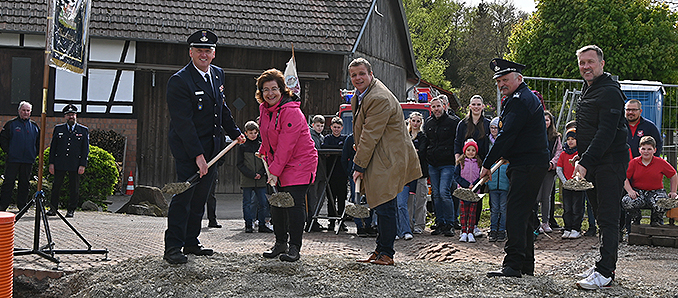 Der erste Spatenstich für die Erweiterung des Feuerwehrhauses in Mackenzell ist erfolgt. Neben dem Anbau soll auch das Bestandsgebäude modernisiert, Umkleiden für die weiblichen Einsatzkräfte, dem Feuerwehrnachwuchs sowie Platzbedarf für das im nächsten Jahr kommende, größere Löschgruppenfahrzeug geschaffen werden.
