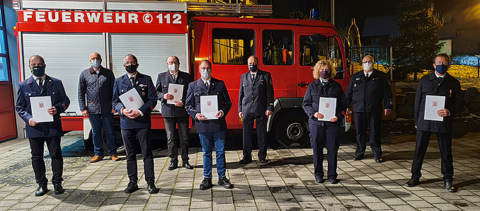 Auch bei den gemeindlichen Feuerwehren der Gemeinde Poppenhausen konnte bisher noch keine gemeinsame Jahreshauptversammlung für das Jahr 2020 stattfinden. Diese, ursprünglich für den 13. November 2020 geplante, Versammlung ist nach momentanem Stand ins Frühjahr 2021 verschoben. Trotzdem sollte eine Gelegenheit gefunden werden, die langjährige, aktive Mitgliedschaft verdienter Kameradinnen und Kameraden in ihren Einsatzabteilungen mit einer Anerkennungsprämie des Landes Hessen zu würdigen.