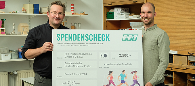 Jeder Kilometer zählt! – Das war das diesjährige Motto der FFT Produktionssysteme beim Rhön Energie Challenge Lauf. Sich sportlich betätigen und gleichzeitig etwas Gutes tun, dass spornte 152 Sportlerinnen und Sportler der FFT an. Im Rahmen des 50-jährigen Jubiläums von FFT spendete das Unternehmen pro gelaufenen Kilometer 0,50€ an den MINT-Erfinderclub der Kinder-Akademie Fulda. Mit der Spende will FFT die jungen Erfinder unterstützen.