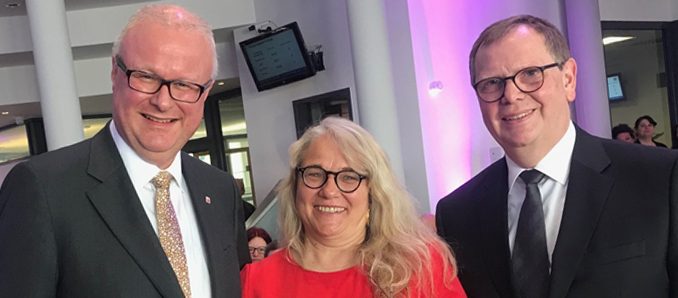 Ihnen nun heute auch ein offizielles ,Herzlich Willkommen‘ in Fulda!“, so der Minister im Rahmen seiner feierlichen Ansprache im dortigen Finanzamt. „Was macht gute Führung aus? Neben der unverzichtbaren fachlichen Expertise halte ich auch die jeweilige Persönlichkeit für einen sehr bedeutenden Faktor. Denn, wie ein kluger Kopf mal sagte: ,Werte kann man nicht lehren, sondern nur vorleben.‘ Für Ihre neue Arbeit wünsche ich Ihnen, dass Sie Ihre Mitarbeiterinnen und Mitarbeiter ganz in diesem Sinne positiv inspirieren und motivieren. Ich bin mir sicher, Sie werden auch hier in Fulda hervorragende Arbeit leisten!“, sagte Schäfer an Hesse gerichtet.
