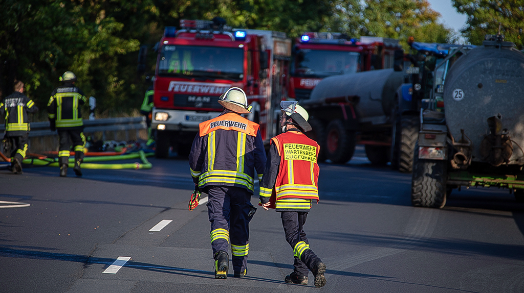 Gegen 18.22 Uhr meldete die Leitstelle des Vogelsbergkreises einen Flächenbrand an der B254 zwischen Landenhausen und Großenlüder-Müs. Eine große Rauchentwicklung war schon von Weitem zu sehen. Etliche Feuerwehren sind im Einsatz. Laut ersten Informationen sind rund 7000 Quadratmeter in Brand geraten. Das Feuer brach in der Böschung aus und griff auf das Feld über. Der Wind trug das Feuer immer weiter und machte es den Rund 50 Einsatzkräfte der Feuerwehren Landenhausen, Angersbach, Müs, Großenlüder und Bad Salzschlirf nicht einfach. Ebenso war eine Streife der Polizei Fulda vor Ort, die Einsatzstelle war genau auf der Kreisgrenze zwischen Großenlüder-Müs und Landenhausen. Etliche Landwirte kamen mit Güllefässern und brachten Wasser für die Feuerwehr. Einige Landwirte pflügten das Feld sofort um. +++