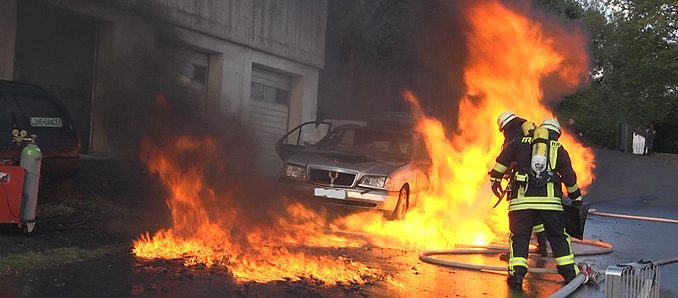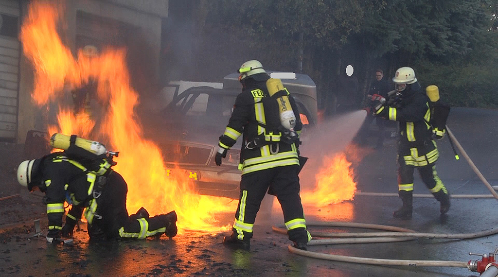 „Flashover“ bei Löscharbeiten an Gas PKW