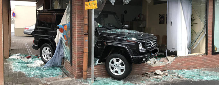 Rückwärts vom Parkplatz ins Schaufenster. Fotos: Weber
