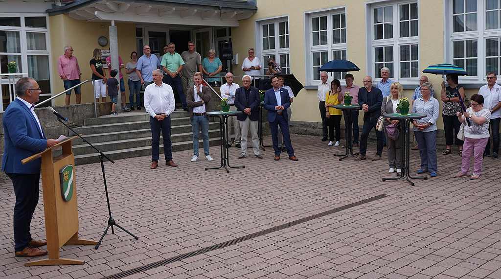 Bürgermeister Christian Henkel ging in seiner Rede zur offiziellen Bestimmungsübergabe der K 88 auf die sehr umfangreiche Baumaßnahme ein. „Nach einer sehr umfangreichen Maßnahme – 3 Jahre - mal mehr – mal weniger wurde hier gebaut – ist es geboten, dass Ganze in einem gebührenden Rahmen zu feiern, was wir heute tun wollen“, sagte er. Bei der Gemeinschaftsmaßnahme des Landkreises und der Gemeinde sind nicht nur Straßen- und Gehwegbauarbeiten durchgeführt worden, sondern es wurden auch 1300 Meter neue Wasserleitungen verlegt. Die Wasserleitungen zu erneuern, sei nach Bürgermeister Henkel dringend geboten gewesen. Ebenso sei es geboten gewesen, zu vermeiden, dass Schmutzwasser ins Erdreich eindringt. Auch wurden bei dieser Baumaßnahme Kanalsanierungsarbeiten durchgeführt; In diesem Kontext wurden 650 Meter neue Kanalleitungen verlegt, 329 Meter wurden im Bestand von innen saniert.