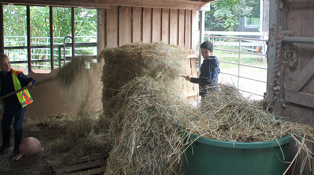 Paso Finos sind sehr temperamentvolle Pferde, deshalb blieb es beim Streicheln der Pferde und dem Füttern mit Heu. Die beiden Hunde Paula und Fine machten den Kindern und einigen Erwachsenen zunächst etwas Angst, aber als die ersten Hemmungen überwunden waren, gab es für die Kinder kein Halten mehr. Die beiden sehr geduldigen Hunde ließen alles mit sich geschehen.
