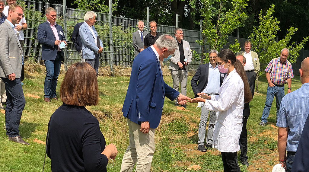 Der landwirtschaftliche Modellbetrieb des FNU bietet vielfältige Möglichkeiten, Labor- und Freilanduntersuchungen für Natur- und Verbraucherschutz durchzuführen. Der Landbau mit rd. 20 ha Grünland und rd. 30 ha Ackerland, die Haltung landwirtschaftlicher Nutztierarten, die Möglichkeit, Forschung an Kleinsäugern und Vögeln im Freiland durchzuführen, die Freiland-Modellgewässer und der großzügige Isotopenbereich komplettieren die sehr guten Voraussetzungen zur Unterstützung von Lehr- und Forschungsvorhaben. Darüber hinaus sind die Wetterstation des DWD und die Vernetzung mit Partnerunternehmen aus der Auftragsforschung eine perfekte Ergänzung im Portfolio. Bürgermeisterin Claudia Blum begrüßte die Gäste aus dem Kultusministerium, der Universität Gießen, die Spitze des Vogelsbergkreises und Vertreter von zahlreichen Ämtern des Landkreises im Namen der Stadt Homberg (Ohm).