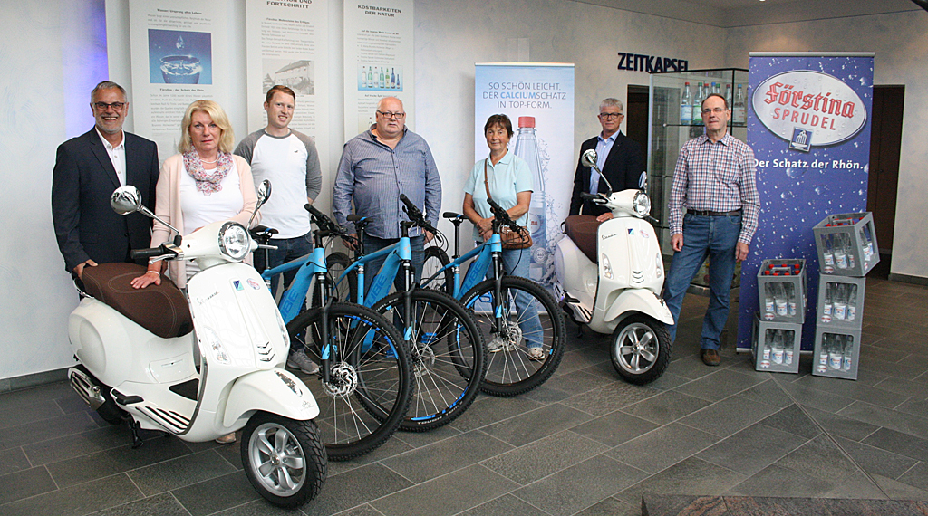 Außerdem übergeben wurden drei E-Bikes der Marke „Cube“ (Radsportwelt Seng) an Bernd Vierschilling aus Siegen, Andreas Dankwardt aus Nüsttal und Hildegard Kött aus Buttlar sowie zwei stylische Vespa Roller (Firma Busch & Wagner) an Ingrid Mehler aus Petersberg und Gerhard Scherf aus Hosenfeld. Nach der Gewinnübergabe im Hause Förstina Sprudel hatte Marketingleiter Peter Seufert noch zu einer Betriebsbesichtigung eingeladen.