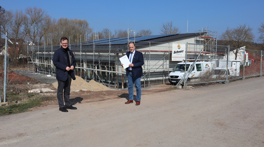 An die Gemeinde Großenlüder hat Schmitt gleich drei Förderbescheide übergeben: 45.600 Euro für ein neues Löschfahrzeug in Kleinlüder, 43.200 Euro für den Umbau des Außenbereichs der Kita Müs sowie 476.000 Euro für den Neubau der Kita Sonnenschein in Bimbach. „Wir sind dem Landkreis Fulda für seine großzügige Förderung sehr dankbar“, erklärt Bürgermeister Werner Dietrich. „Solche Förderungen sind nicht selbstverständlich. Es ist schön, dass der Kreis in so vielen Bereichen unterstützt und damit solche großen Bauvorhaben wie die Kita in Bimbach ermöglicht.“ Durch den Kita-Neubau entstehen zwei weitere Kita-Gruppen in Bimbach, es besteht zudem die Option die Kita bei Bedarf um eine zusätzliche Gruppe zu erweitern. +++