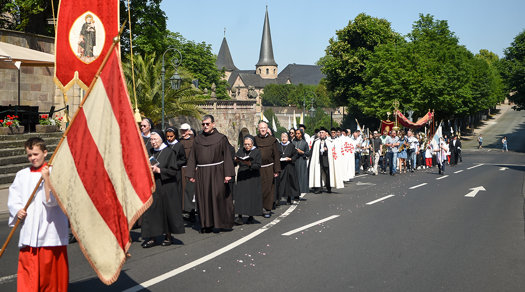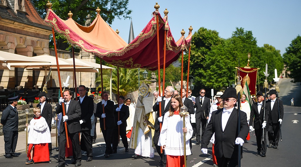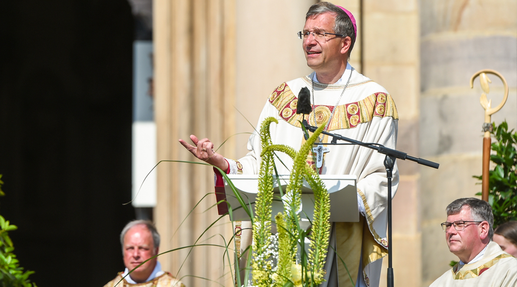 Auf neuen Wegen unterwegs – beim Fronleichnamsfest in Fulda nahm die Prozession erstmals eine neue Strecke durch die Innenstadt. Dort machte sie Station an vier Altären. Zuvor erinnerte Bischof Dr. Michael Gerber auf dem Domplatz an die Bedeutung des Hochfestes: Wir leben wesentlich aus dem, was wir uns nicht selbst geben können. Wir leben aus dem, was uns Jesus Christus gibt. Dafür können wir dankbar sein.