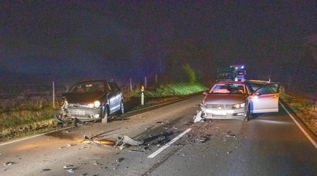 Eine 63 jährige Fahrzeugführerin eines schwarzen VW Polo aus dem Wartburgkreis befuhr am Montagnachmittag um 17.25 Uhr die B84 von Neuwirtshaus kommend in Richtung Rasdorf. Hierbei viel sie bereits mehreren Zeugen auf Grund ihrer unsicheren Fahrweise auf. In einem Kurvenbereich kurz vor Rasdorf geriet sie auf die Gegenfahrbahn und kollidierte dort mit einem in Gegenrichtung fahrenden VW Passat. Die unfallverursachende Fahrzeugführerin wurde leicht und ihre 69 jährige Beifahrerin schwer verletzt. Der 50 jährige Fahrer des VW Passats und seine Beifahrerin, beide aus Hünfeld, wurden ebenfalls schwer verletzt und in einem Krankenhaus aufgenommen. Der Sachschaden beträgt ca. 25.000 Euro. +++