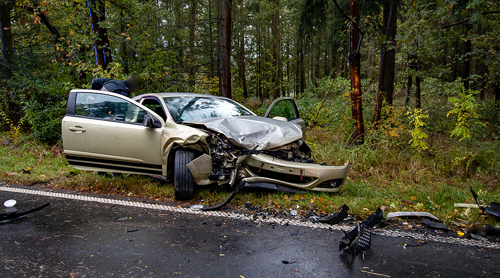 Schwerer Unfall am Donnerstagmorgen auf der L3140: Ein junger Mann aus dem Vogelsbergkreis verlor auf regennasser Fahrbahn die Kontrolle über seinen Opel und stieß frontal mit dem Dacia einer 50-jährigen Frau zusammen.