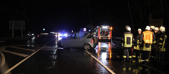 Bei einem Frontalzusammenstoß am Freitagabend auf der Bundesstraße 27 in Höhe der Abfahrt Bernhards wurden zwei Personen leicht verletzt und es entstand Sachschaden in Höhe von 12.000 Euro. Ein 85-jähriger Pkw-Fahrer aus der Gemeinde Petersberg befuhr die B27 in Richtung Hünfeld und wollte an der Abfahrt Bernhards nach links abbiegen. Hierbei missachtete er die Vorfahrt des entgegenkommenden Pkw eines 59-Jährigen aus Dipperz und beide Fahrzeuge prallten im Einmündungsbereich frontal zusammen. Beide Fahrzeugführer wurden dabei leicht verletzt und vorsorglich in Fuldaer Krankenhäuser gebracht. An beiden Fahrzeugen entstand wirtschaftlicher Totalschaden. Für die Erstmaßnahmen an der Unfallstelle und die anschließende Bergung beider Fahrzeuge musste die B27 für kurze Zeiten voll gesperrt werden. +++
