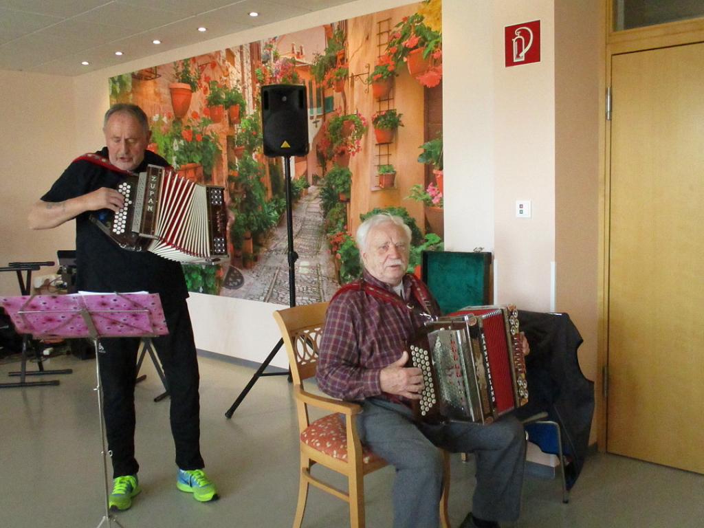 Ein weiteres Highlight erlebte die Senioreineinrichtung mit dem Auftritt der Gesangsformation „Joyful“. Hier konnte sich im Besonderen Mauricio Hau, Auszubildender im Seniorenzentrum „Am Roten Rain“, den Heimbewohnerinnen und – bewohnern sowie seinen Mitarbeiterinnen und Mitarbeitern von seiner musikalischen Seite präsentieren. „Joyful“ verstand es, das Publikum, von Anfang an, zu begeistern. So war es auch nur selbstverständlich, dass man lautstark eine Zugabe einforderte. Zum musikalischen Ausklang spielten Alfred und Roland auf. Mit ihren Akkordeonklängen sorgten sie nochmal für eine schwungvolle Runde. So wurde in diesem Kontext kräftig mitgesungen und geschunkelt. Die Sängerin der Gesangsformation „Joyful“ lies es sich in dieser stimmungsvollen Atmosphäre nicht nehmen, mit den beiden ein gemeinsames Lied zu singen. Wieder einmal verging die Zeit viel zu schnell. Doch die Seniorinnen und Senioren des Seniorenzentrums „ Am Roten Rain“ sind jetzt bestens für den Frühling eingestimmt. +++