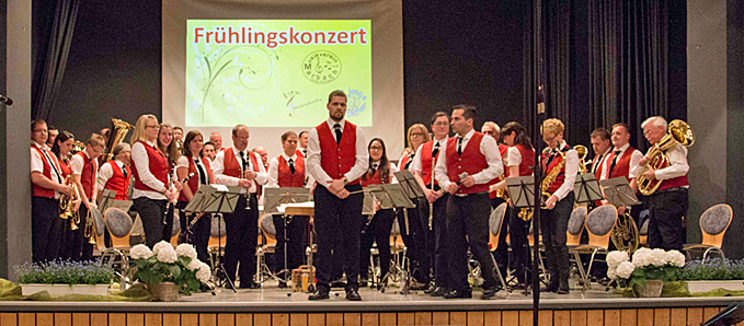 Marbach. In die Frühlingszeit tauchten die Zuhörerinnen und Zuhörer schon beim Betreten des Konrad-Trageser-Hauses ein. In diesem Jahr war das Konrad-Trageser-Haus ganz im Zeichen des Frühlings geschmückt. Schon bei der Begrüßung durch den 1. Vorsitzenden Andreas Raub zeigte sich, dass die Musikerinnen und Musiker ein ereignisreiches Jahr 2015 hinter sich hatten. Im Jahr 2015 hat der Musikverein Marbach e.V. einen neuen Dirigenten bekommen und steht seitdem unter der Leitung von Markus Klüber. Dies war auch der Grund, warum es im vergangenen Jahr kein Konzert gab. Daher freuten sich die 36 Musikerinnen und Musiker ganz besonders auf diesen Abend, da die Probenarbeit für das Konzert schon im letzten Jahr begonnen hatte und man ganz gespannt auf die Reaktionen des vollbesetzten Konrad-Trageser-Hauses war.