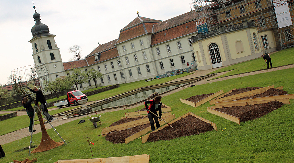 „Es ist mittlerweile ja schon längst Tradition, dass alljährig – zum Fürstlichen Gartenfest, welches ja immer unter einem bestimmten Motto, unter einem bestimmten Sonderthema steht, auch immer ein Schaugartenwettbewerb, dessen Arbeitstitel gleich dem Sonderthema ist, stattfindet. In den letzten Jahren hatten wir überwiegend junge Menschen, die an diesem teilnahmen und das hat uns darin bestärkt, dieses Jahr unseren Schaugartenwettbewerb, als ‚reinen Nachwuchswettbewerb‘ auszuschreiben. Wir haben diesbezüglich alle Hochschulen angeschrieben, an diesen der Studiengang Landschaftsarchitektur angeboten wird – fünf Hochschulen aus der Bundesrepublik haben sich letztlich am Wettbewerb beteiligt. Im Dezember letzten Jahres tagte hier auf Fasanerie eine hochkarätige Fachjury, die alle aus der Branche Garten- und Landschaftsbau kommen und dementsprechend wissen, wovon sie reden. Wir hatten Einsendungen von ‚schiefen Türmen von Pisa‘ und ‚venezianischen Gondeln‘ – da waren sehr schöne Entwürfe dabei, aber am Ende haben wir uns für Eva Schmidt und Henriette Deix mit Ihrem Entwurf der ‚Una Pizza Vegetariana‘, einer vegetarischen Pflanzenpizza mit einem großen Glas Wein, welches symbolisch für die italienische Lebensart steht, entschieden“, so Museumsdirektor Dr. Markus Miller.