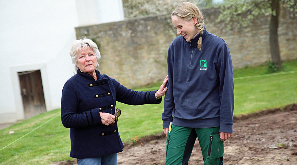 Neu beim diesjährigen Fürstlichen Gartenfest auf Schloss Fasanerie – ist unter anderem auch, dass sich Auszubildende – in unterschiedlichem Lehrjahr – aus der Berufssparte des GaLaBaus (Garten- und Landschaftsbaus) auf dem diesjährigen Fürstlichen Gartenfest auf Schloss Fasanerie mit ihrem landschaftsarchitektonischen Entwurf eines Zitronenblatt-Gartens präsentieren. Die Idee, das Fürstliche Gartenfest, als Plattform für die Berufssparte des GaLaBaus zu nutzen, kam nicht von ungefähr. So wird es auf Schloss Wolfsgarten bei Langen schon seit wenigen Jahren gehandhabt, dass man Auszubildende aus dem Berufsfeld mit in die Verkaufsausstellung integriert, um Gartenfestbesucher so auf – wie es gestern Barbara Siehl formulierte – „diesen wunderbaren sowie sehr vielfältigen Beruf aufmerksam zu machen“. Daneben lobte die Gartenexpertin, die auch gestern auf dem Vorab-Pressegespräch des Fürstlichen Gartenfestes als Moderatorin fungierte, das bemerkenswerte Projekt, welches Besuchern und Interessierten, so viel Einblick gewährt. Darüber hinaus hält es die Moderatorin für sinnvoll, das Fürstliche Gartenfest – auch im Hinblick auf Ausbildung und zukünftige Berufswünsche zu besuchen. In diesem Kontext ist es möglich, mit Fachexperten vor Ort mit auszubildenden Betrieben und Auszubildenden ins Gespräch zu kommen.