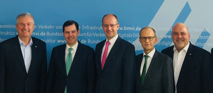 „Fulda-Gipfel“ in Berlin (von links) Landrat Bernd Woide, Verkehrs-Staatssekretär Michael Güntner, MdB Michael Brand, Bürgermeister Dag Wehner und MdL Markus Meysner. Foto: BMVI