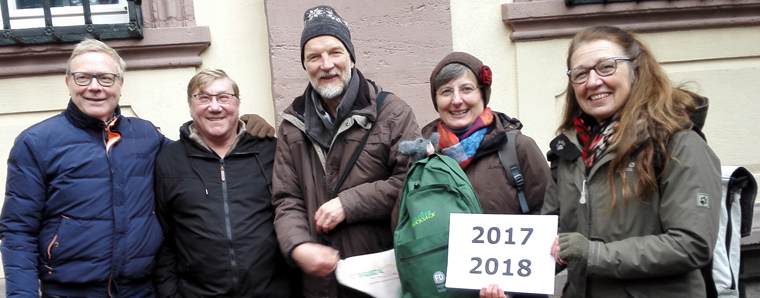 Fulda. Seit etwa 3,5 Jahren veranstaltet Fulda kulinarisch Stadtführungen mit Genuss. In diesem Jahr buchten erstmals mehr als 2000 Teilnehmer diese Stadtführung der besonderen Art. Symbolisch übergab der Gründer, Martin von Mallinckrodt (Mitte) an 2 Teilnehmerinnen aus Schweinfurt als Teilnehmer 2017 und 2018 einen „Fuldaer Rucksack“, gefüllt mit Spezialitäten der Stationen der Genuss- und Erlebnisstour. Bei der anschließenden vierstündigen Genussführung durch die Fuldaer Alstadt besuchten die Teilnehmer u.a. eine Kaffeerösterei, eine kleines Cafe und genossen meditarrane Köstlichkeiten und regionale Feinkost. +++