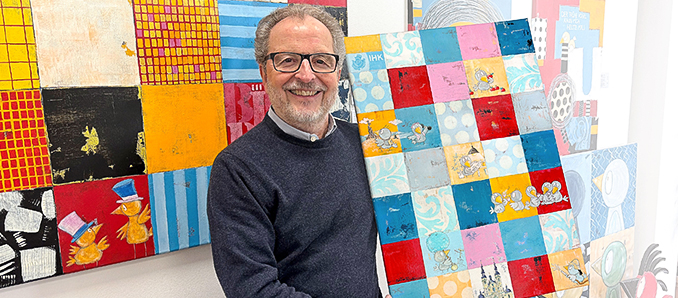 Die weitere Geschichte ist schnell erzählt: Mit Pinseln und Acrylfarbe bemühte Walter Steinbeck Protagonisten aus seiner Bilderserie „Birds“ und stellte mit ihnen in verschiedenfarbig illustrierten und mit Mustern versehenen Kacheln die Facetten der Initiative dar: gesunde Ernährung, Sport und Bewegung, gute Arbeitsbedingungen, gutes Arbeitsklima, gemeinsames Feiern, füreinander da sein sowie soziale Aktivitäten außerhalb des Betriebs – für die Gesellschaft.